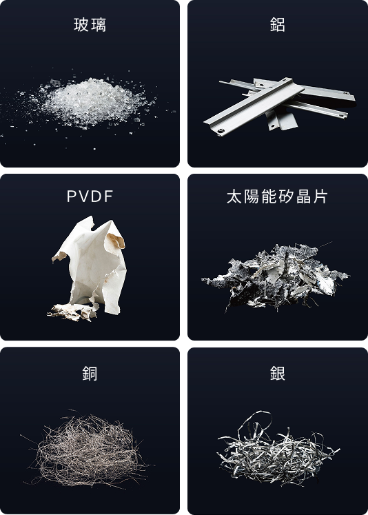 如何分離不同材質以獲得純淨的回收材料,是光電板回收處理時的主要挑戰。 目前國內取得 D-2528「裝置使用後廢棄之太陽能光電模組」處理許可證的六家業者中, 鴻升擁有台灣業界首屈一指的技術與量能:回收率高達 95%,日處理量高達 20 公噸!