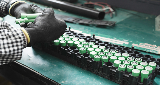 鴻升有效回收報廢鋰電池,可拆分已毀損的鋰電池進行處理,並細部分選出塑膠原料及金屬微粒,提供高經濟效益的再製利用。