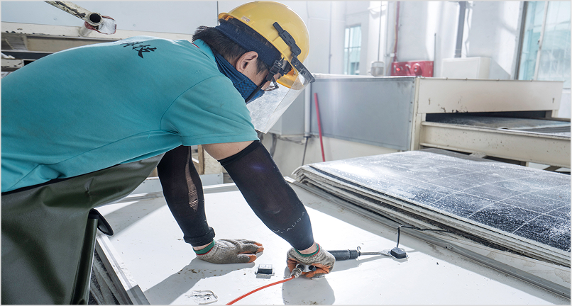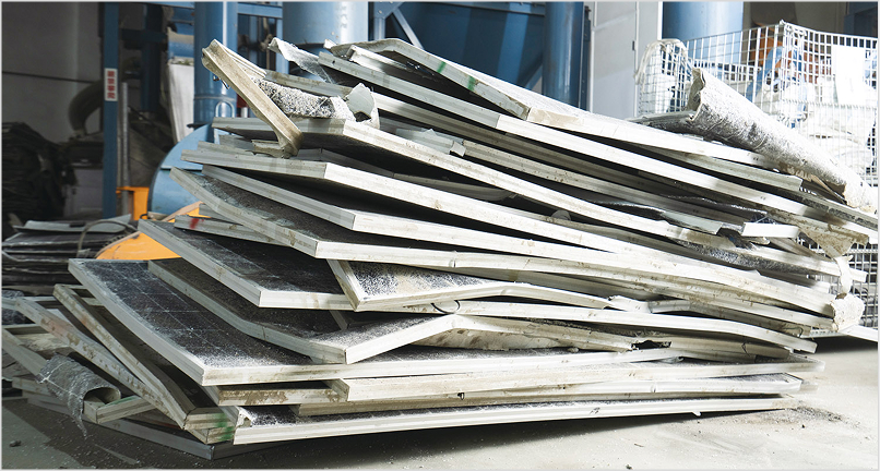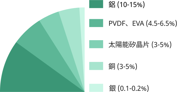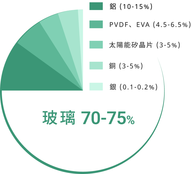 如何分離不同材質以獲得純淨的回收材料,是光電板回收處理時的主要挑戰。 目前國內取得 D-2528「裝置使用後廢棄之太陽能光電模組」處理許可證的六家業者中, 鴻升擁有台灣業界首屈一指的技術與量能:回收率高達 95%,日處理量高達 20 公噸!
